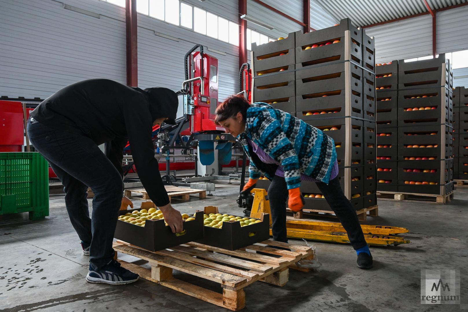 Сортировка яблок в плодохранилище